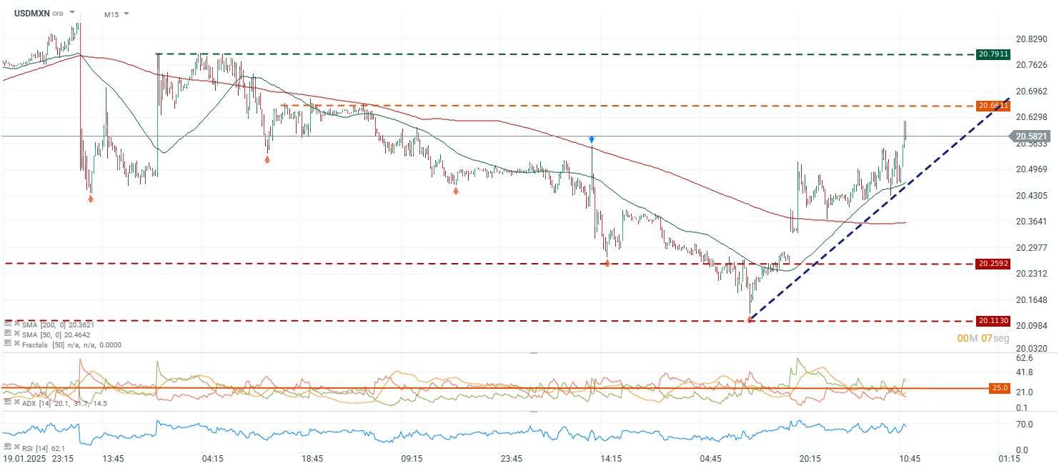 El peso mexicano experimenta una depreciación del 1% frente al dólar estadounidense, con el tipo de cambio fluctuando entre un mínimo de 20.337 y un máximo de 20.58 durante la jornada. Este movimiento refleja la sensibilidad de los mercados emergentes a los eventos geopolíticos recientes, con el dólar fortaleciéndose ante nuevas tensiones comerciales.