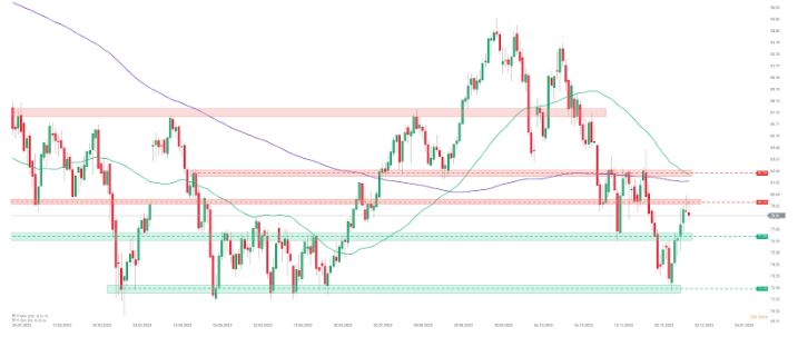 Los precios del crudo han tenido una fuerte racha en las últimas sesiones, subiendo más del 10% desde los mínimos intradiarios alcanzados el 13 de diciembre de 2023. Ayer se intentó superar la zona de 80 dólares por barril, pero los alcistas no lograron mantener esas ganancias. y el petróleo terminó la jornada de ayer por debajo de este nivel clave. Esta mañana se hizo otro intento de superar el área de $ 80, pero también fracasó y se reanudó el retroceso. Las caídas se aceleraron a primera hora de la tarde cuando se informó que Angola decidió abandonar el cartel de la OPEP.