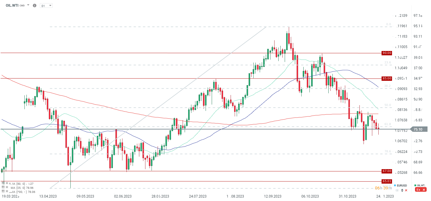 Actualmente, el petróleo incluso está registrando una ligera subida de poco más de 75 dólares por barril. Un rendimiento superior a 75 dólares por barril es clave desde un punto de vista técnico.