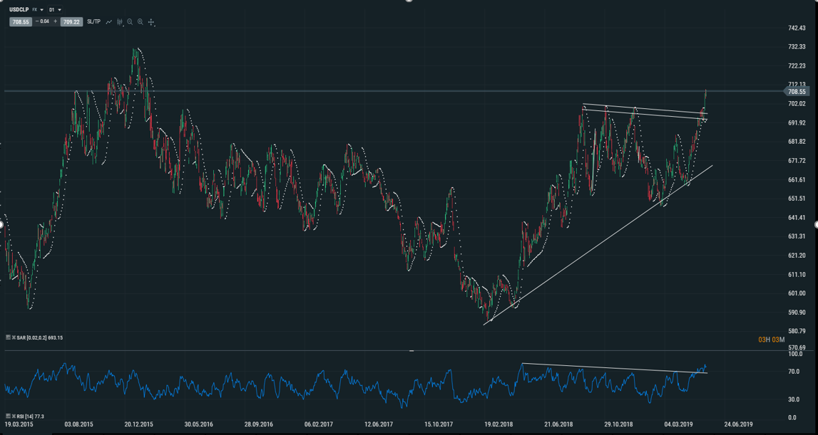Por su parte, el peso chileno (CLP) continúa depreciándose frente al billete verde, alcanzando el día de hoy los 710 pesos por dólar. El inversor debe estar atento a la publicación de los datos de PMI en China, manufacturero y no manufacturero (21:00 hora de Chile), que, de no cumplir con las expectativas del mercado, podría dar lugar a nuevas caídas en el precio del cobre que podrían lastrar aun más al maltrecho peso chileno.