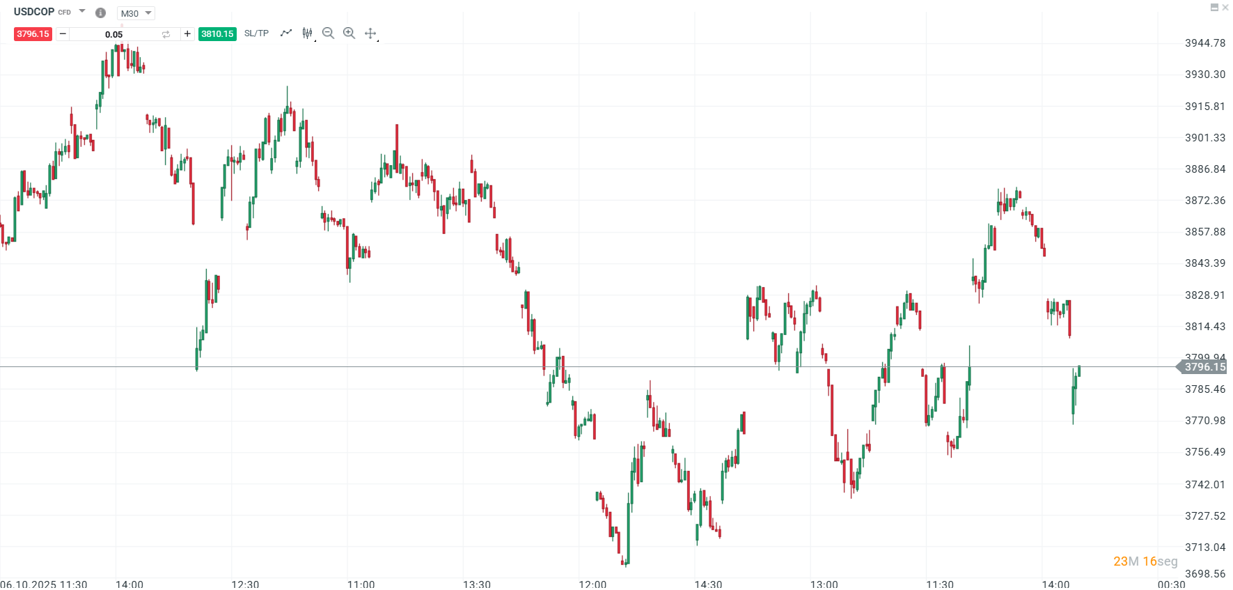 Cotización del peso colombiano en la sesión actual