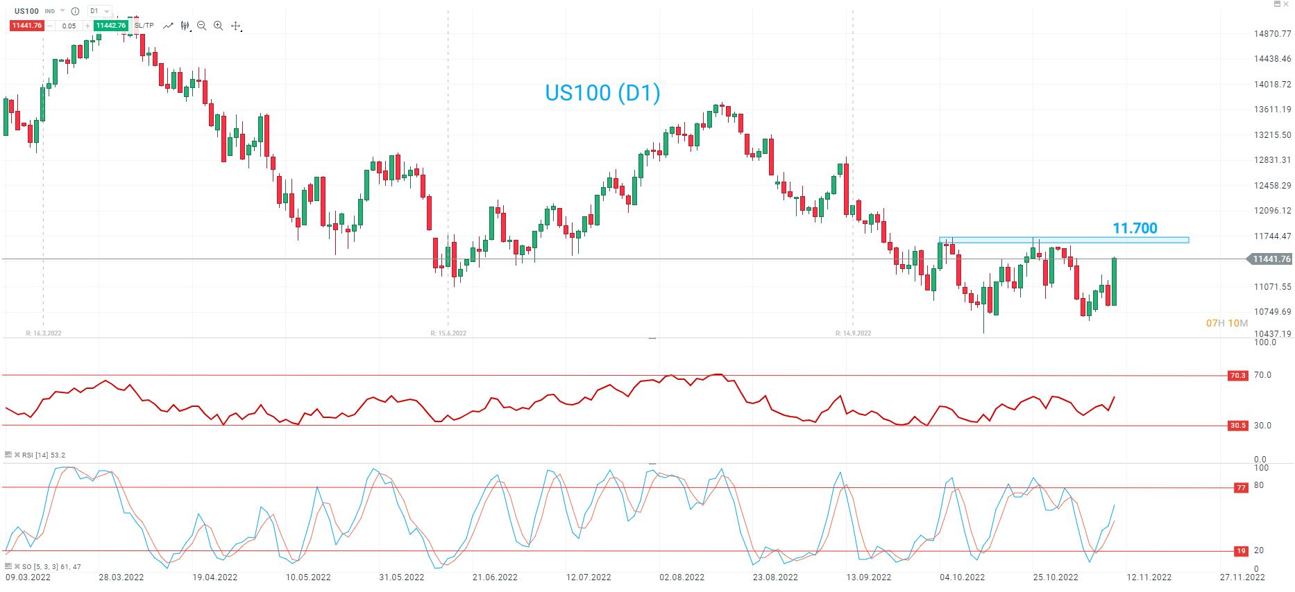 En gráfico diario, los inversores esperan que el US100 alcance la resistencia clave en los 11.500 puntos.