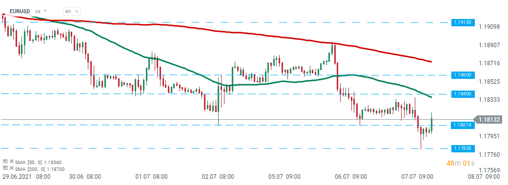 La reacción del mercado a las Minutas del FOMC de hoy es insignificante. El EURUSD rompió la resistencia en 1.1807 y se dirige hacia la próxima resistencia en 1.1840. Fuente: xStation5.