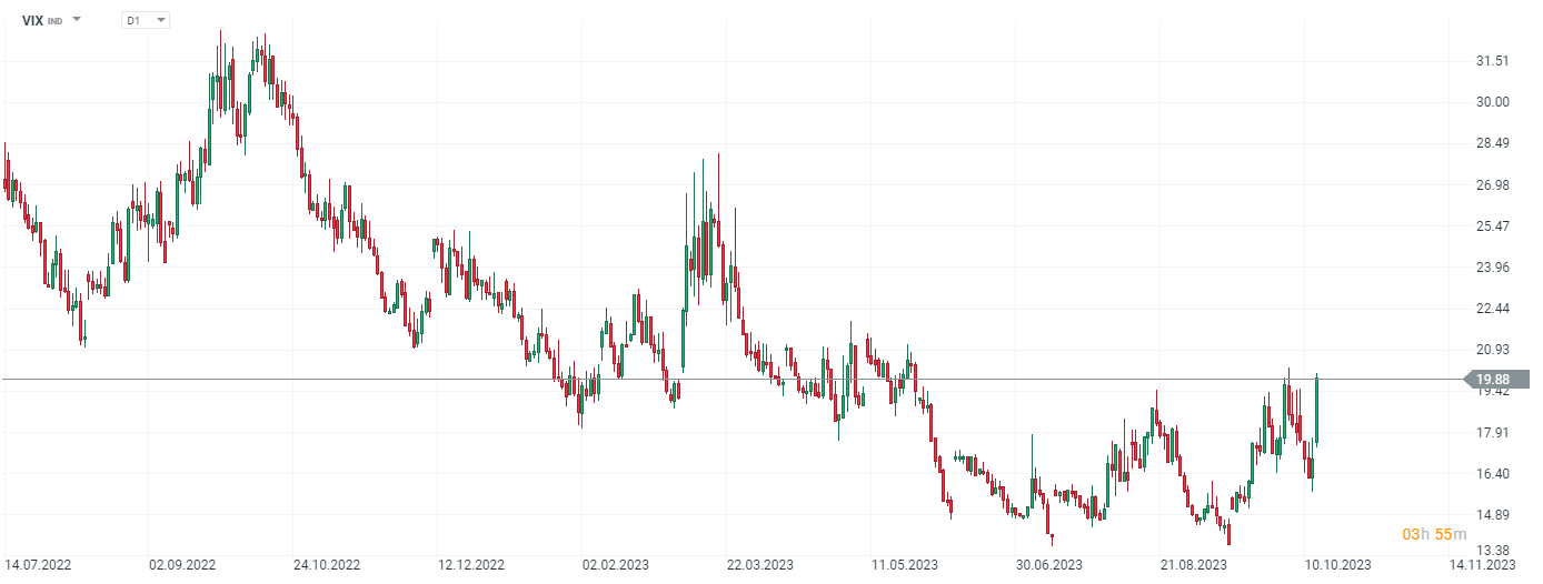 Los contratos de futuros del VIX suben un 17% hoy debido a una mayor volatilidad esperada en el S&P 500. Fuente: xStation5.