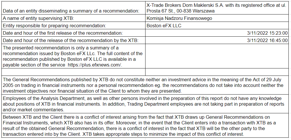 "Este informe se proporciona sólo con fines de información general y con fines educativos. Cualquier opinión, análisis, precio u otro contenido no constituyen asesoramiento de inversión o recomendación en entendimiento de la ley de Belice. El rendimiento en el pasado no indica necesariamente los resultados futuros, y cualquier persona que actúe sobre esta información lo hace bajo su propio riesgo. XTB no aceptará responsabilidad por ninguna pérdida o daño, incluida, sin limitación, cualquier pérdida de beneficio, que pueda surgir directa o indirectamente del uso o la confianza de dicha información. Los contratos por diferencias (""CFDs"") son productos con apalancamiento y acarrean un alto nivel de riesgo. Asegúrese de comprender los riesgos asociados. "
