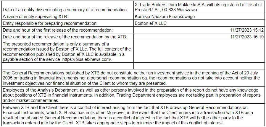 "Este informe se proporciona sólo con fines de información general y con fines educativos. Cualquier opinión, análisis, precio u otro contenido no constituyen asesoramiento de inversión o recomendación en entendimiento de la ley de Belice. El rendimiento en el pasado no indica necesariamente los resultados futuros, y cualquier persona que actúe sobre esta información lo hace bajo su propio riesgo. XTB no aceptará responsabilidad por ninguna pérdida o daño, incluida, sin limitación, cualquier pérdida de beneficio, que pueda surgir directa o indirectamente del uso o la confianza de dicha información. Los contratos por diferencias (""CFDs"") son productos con apalancamiento y acarrean un alto nivel de riesgo. Asegúrese de comprender los riesgos asociados. "