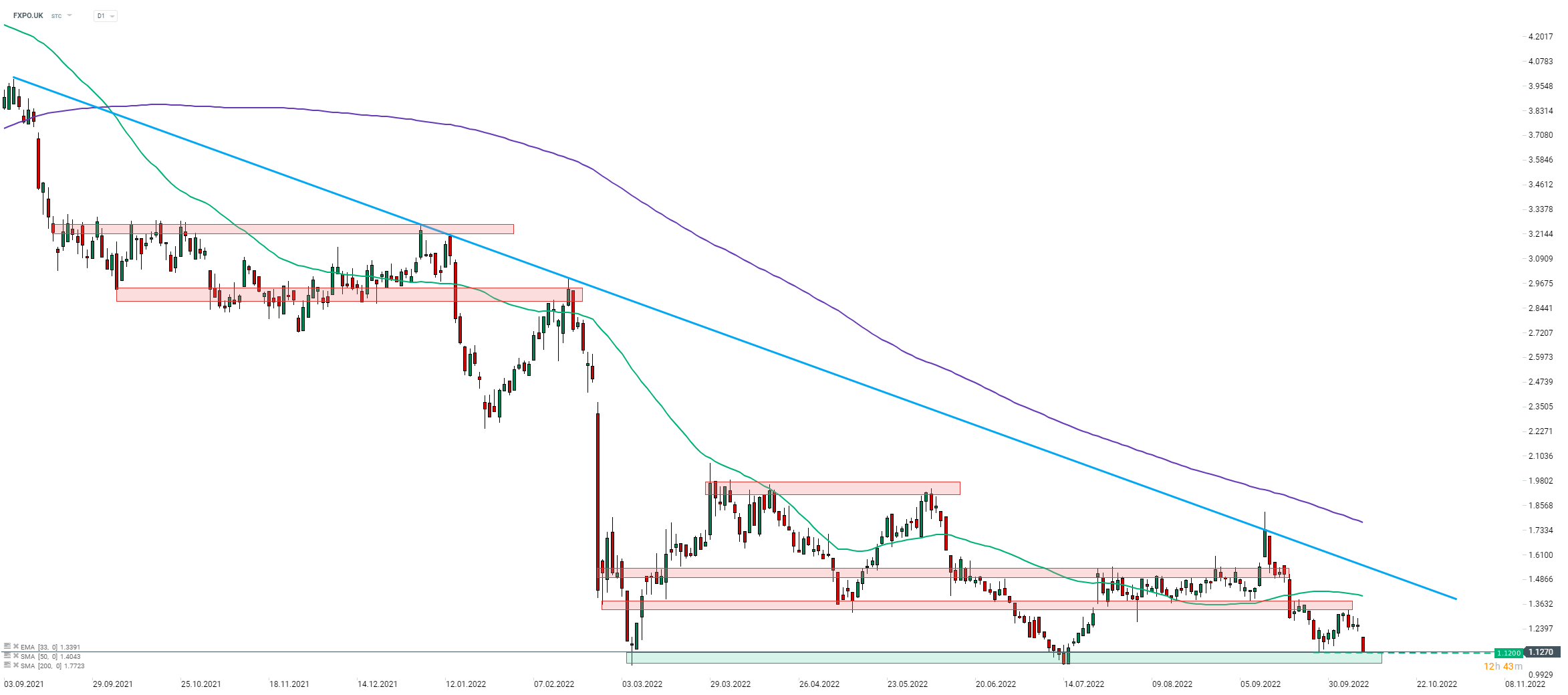 Una mirada al gráfico de Ferrexpo en el intervalo D1 muestra que el precio de las acciones volvió a probar los mínimos de septiembre y octubre en el área de 1.12 esta mañana. Las acciones pueden permanecer bajo presión mientras Rusia continúa atacando la infraestructura crítica de Ucrania y el alcance del daño es difícil de cuantificar.