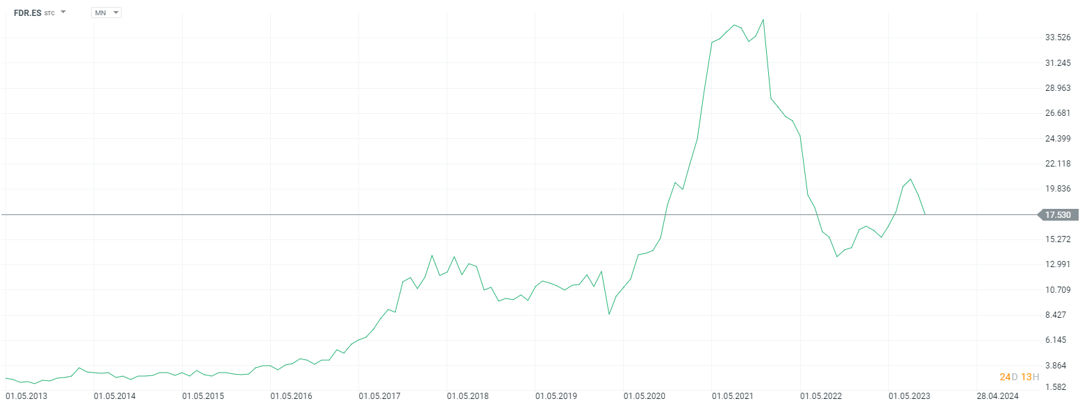 La cotización se disparó tras el Covid y le siguió un pinchazo que hizo caer la acción un 50%.