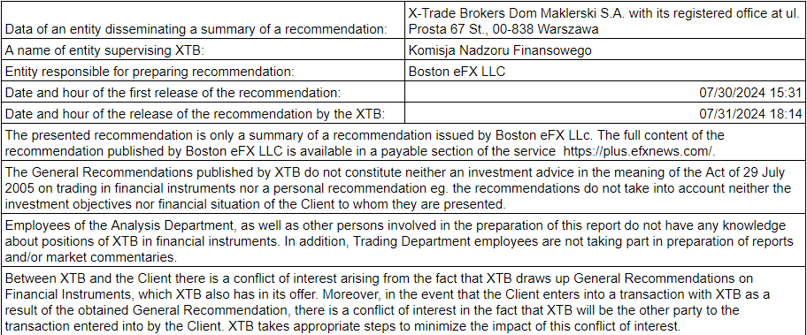 "Este informe se proporciona sólo con fines de información general y con fines educativos. Cualquier opinión, análisis, precio u otro contenido no constituyen asesoramiento de inversión o recomendación en entendimiento de la ley de Belice. El rendimiento en el pasado no indica necesariamente los resultados futuros, y cualquier persona que actúe sobre esta información lo hace bajo su propio riesgo. XTB no aceptará responsabilidad por ninguna pérdida o daño, incluida, sin limitación, cualquier pérdida de beneficio, que pueda surgir directa o indirectamente del uso o la confianza de dicha información. Los contratos por diferencias (""CFDs"") son productos con apalancamiento y acarrean un alto nivel de riesgo. Asegúrese de comprender los riesgos asociados. "