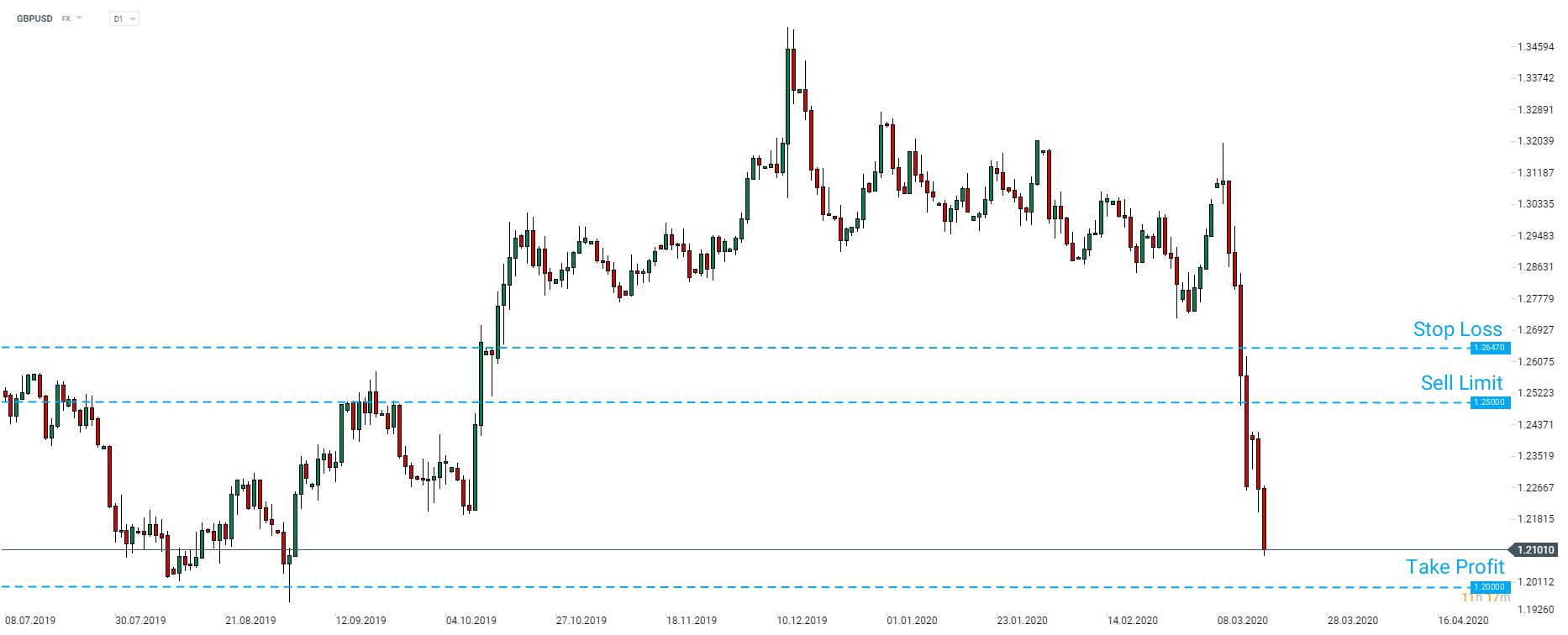 JPMorgan recomienda tomar una posición corta pendiente sobre GBPUSD, sell limit en 1.2500 objetivo en 1.2000. Fuente: xStation5