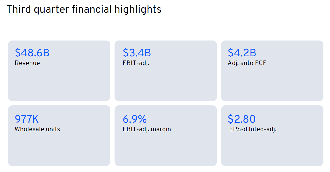 Datos financieros destacados del tercer trimestre. Fuente: GM.