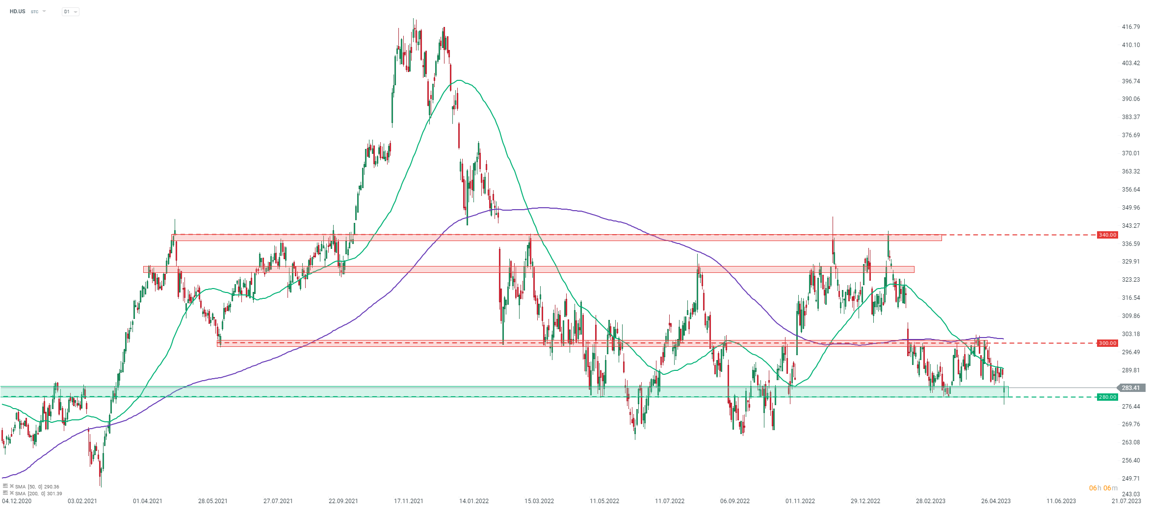 Home Depot (HD.US) inició la sesión de efectivo de hoy en Wall Street a la baja después de informar los resultados del primer trimestre fiscal de 2024 (calendario febrero-abril de 2023). El informe resultó ser una decepción, ya que la empresa tuvo una significativamente caida en las ventas. Si bien se esperaba un desempeño año tras año más débil, el alcance de esta debilidad sorprendió a los analistas. ¡Una pérdida de $ 1.08 mil millones en ventas netas fue la mayor pérdida de ingresos que la compañía ha informado en más de 20 años!