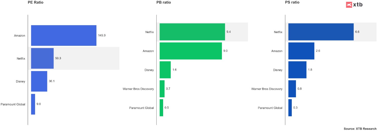 Mirando los indicadores, Netflix es una empresa bastante cara en comparación con su competencia. Fuente: Bloomberg, XTB