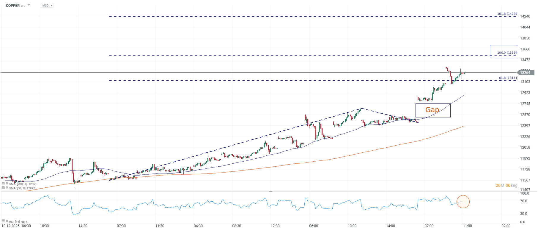 En el análisis técnico, el precio sostiene una estructura alcista y consolida sobre 13.131 como soporte inmediato, un nivel que funciona como referencia tras el último impulso. Mientras se mantenga por encima de esa zona, el sesgo favorece continuidad hacia 13.554 y, si ese umbral cede, extensión hacia 14.239 como objetivo técnico del tramo.