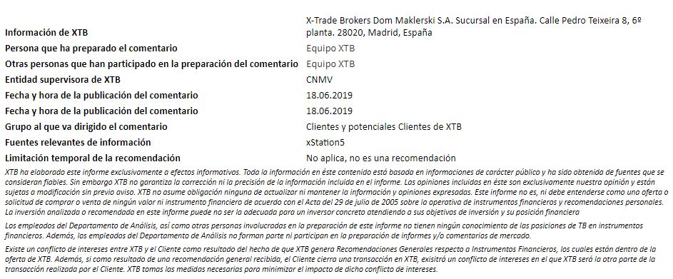 "Este informe se proporciona sólo con fines de información general y con fines educativos. Cualquier opinión, análisis, precio u otro contenido no constituyen asesoramiento de inversión o recomendación en entendimiento de la ley de Belice. El rendimiento en el pasado no indica necesariamente los resultados futuros, y cualquier persona que actúe sobre esta información lo hace bajo su propio riesgo. XTB no aceptará responsabilidad por ninguna pérdida o daño, incluida, sin limitación, cualquier pérdida de beneficio, que pueda surgir directa o indirectamente del uso o la confianza de dicha información. Los contratos por diferencias (""CFDs"") son productos con apalancamiento y acarrean un alto nivel de riesgo. Asegúrese de comprender los riesgos asociados. "