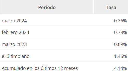 Tabla de inflacion interanual