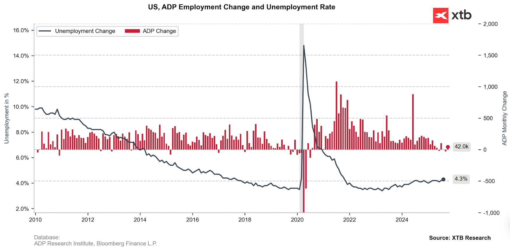 EE. UU.: señales de enfriamiento del mercado laboral (recortes anunciados por Challenger en octubre) han elevado la probabilidad de -25 pb de la Fed en diciembre, lo que debilita al dólar global y ayuda a contener el tipo de cambio local.