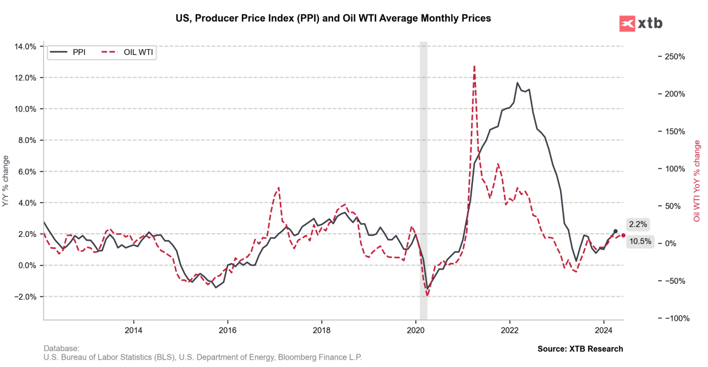 Aunque la inflación del Índice de Precios al Productor (IPP) se conocerá después del IPC, es crucial para entender la inflación al consumidor. Observamos una estabilización en el aumento anual de los precios del petróleo, lo que sugiere el fin del incremento de la inflación del IPP y, por ende, del IPC. Se espera que la inflación del IPP se mantenga en un 2.2%, mientras que la inflación subyacente del IPP caiga ligeramente al 2.3% interanual. Estos datos son fundamentales para evaluar la presión inflacionaria futura.
