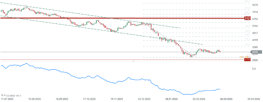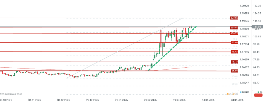 El petróleo se encuentra actualmente en una zona de fuerte oferta y ya no reacciona tan dinámicamente como hace unos días. El estrecho de Ormuz sigue cerrado, pero algunos barcos están cruzando, por lo que los precios pueden estar bajo ligera presión. Aun así, unos pocos barcos no mejoran significativamente la situación global de suministro.