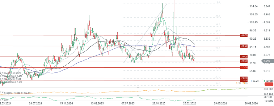 El precio se encuentra en un soporte muy relevante alrededor de 2,8 USD/MMBTU. Fuente: xStation5