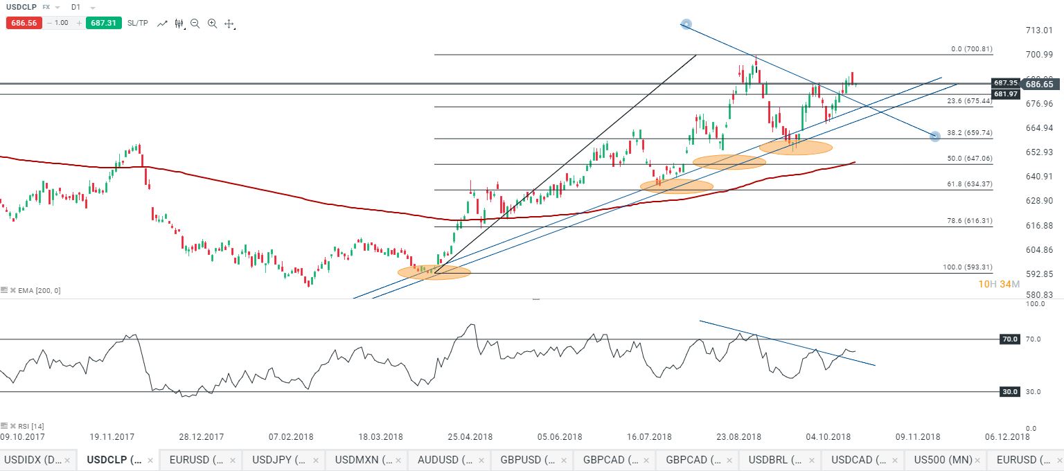 Presión bajista debido a la fortaleza de las monedas emergente y las subidas en el precio del cobre, el siguiente nivel de soporte son los 680-682.