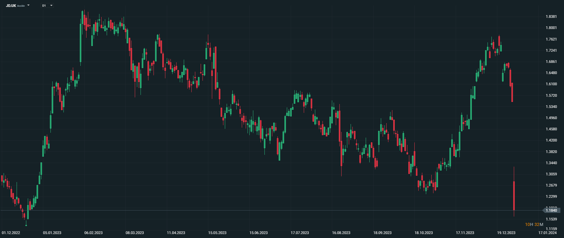 Las acciones de JD Sports consiguieron una revalorización de más del 31% en 2023, aunque este año lo ha empezado con muy mal pie.