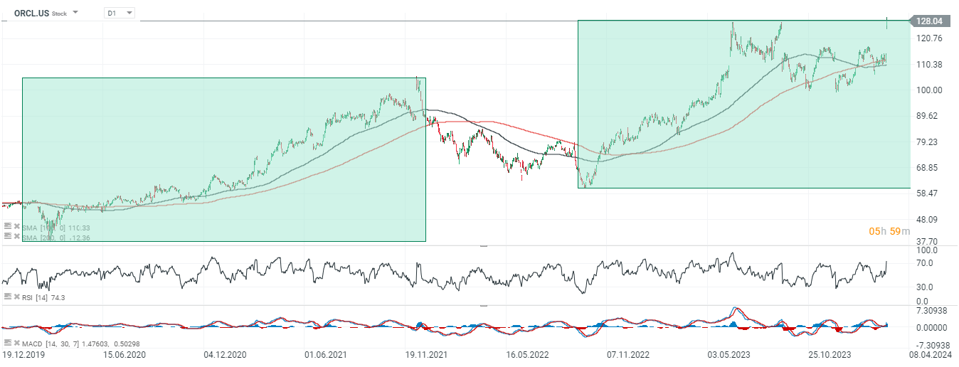 - Los contratos de gran capitalización y la demanda de IA impulsan las acciones de Oracle (ORCL.US) después de los resultados del cuarto trimestre de 2023