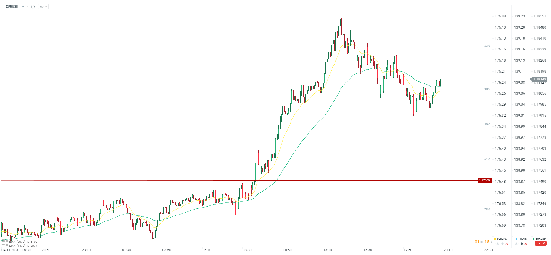 El EURUSD cayó hasta el retroceso de 38,2 por un momento, pero comenzó a recuperarse con bastante rapidez. Fuente: xStation5