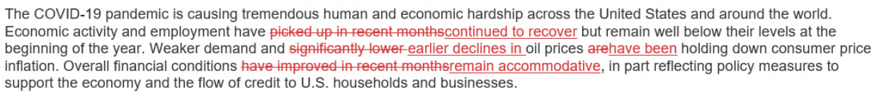 Los únicos cambios se ven en el segundo párrafo de la declaración de la Fed. Como se puede ver, son menores ...