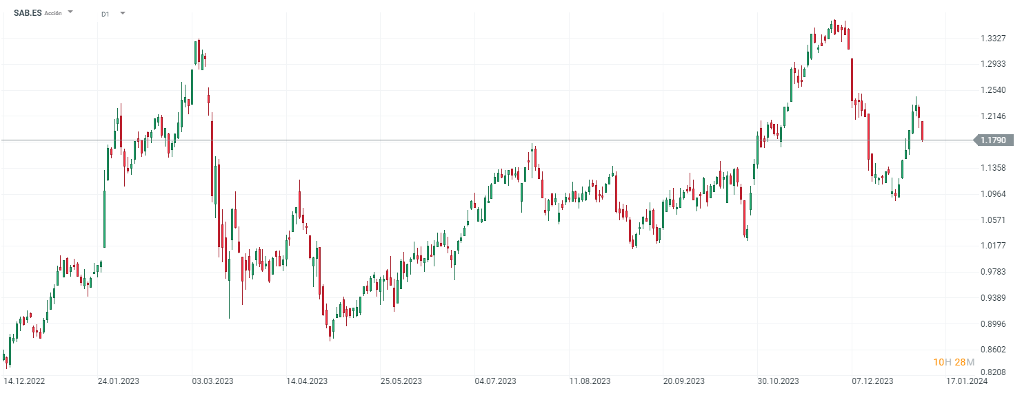 Hoy Sabadell es la acción que más cae del Ibex 35, un 2,8% hasta el momento.