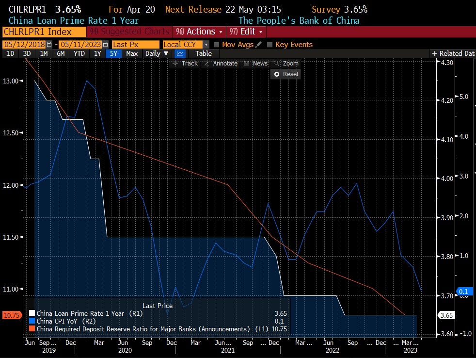 Inflación y tipos de interés en China. Fuente: Bloomberg