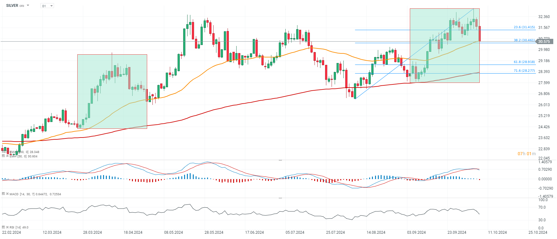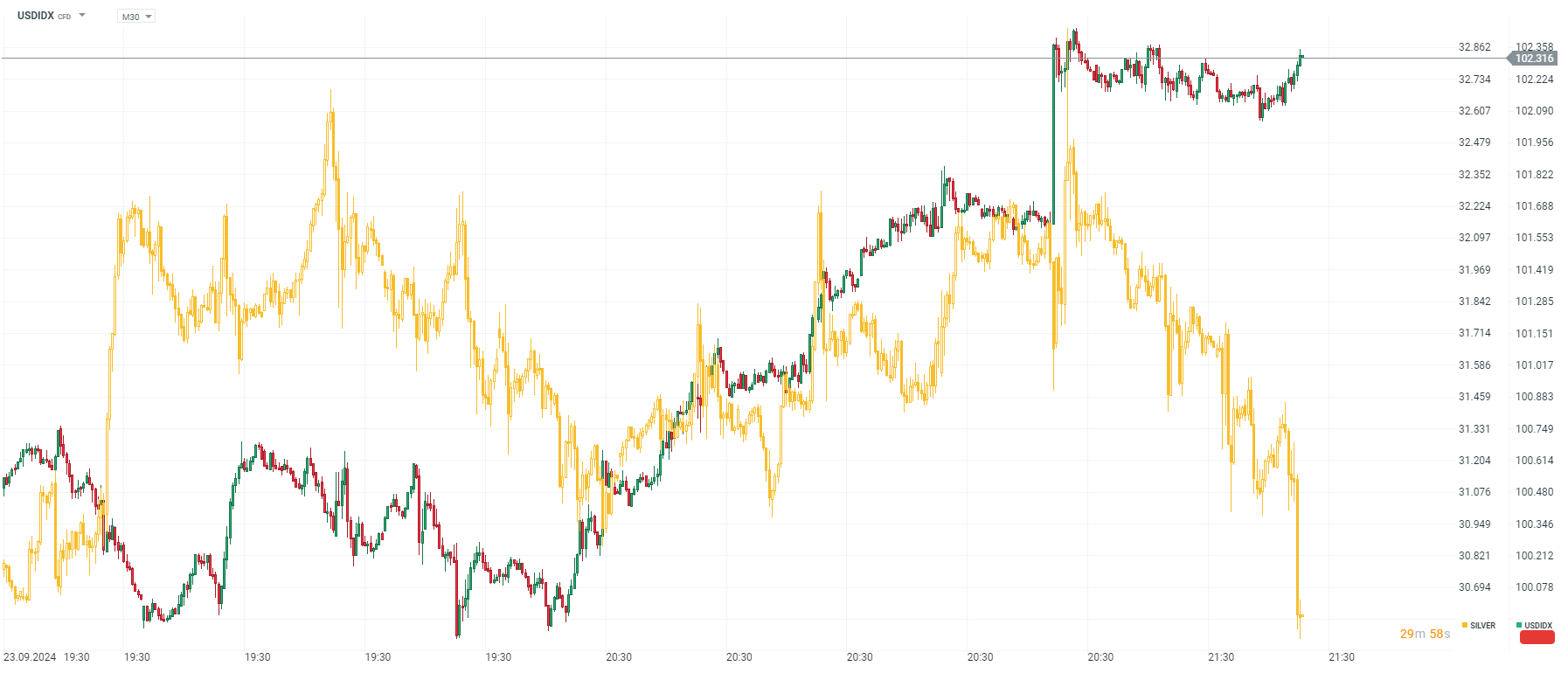Los precios del oro y la plata caen hoy un 0,7% y un 3,3% respectivamente en medio del fortalecimiento del dólar estadounidense. El dólar index sube hoy casi un 0,08%, y los rendimientos de los bonos del Tesoro estadounidense a 10 años amplían los beneficios en más de 1 pb hasta el 4,035%, niveles no vistos desde finales de julio. Los mercados ahora descuentan solo un recorte de tasas de la Fed este año, de 25 pb.