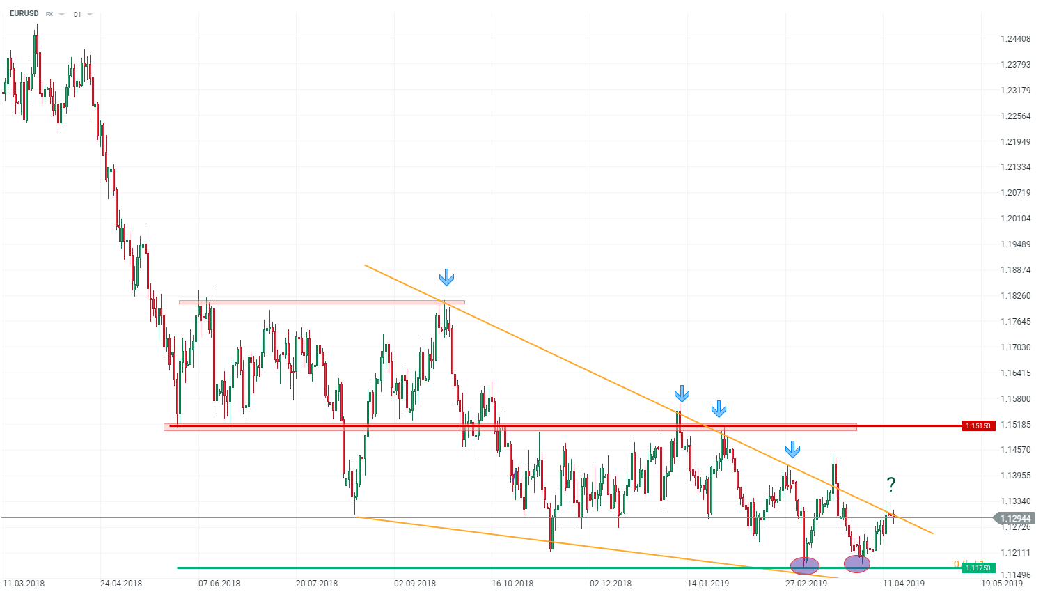 El rally del EURUSD se ha estancado en la primera resistencia. ¿Permanecerá dentro de la cuña? Fuente: xStation5