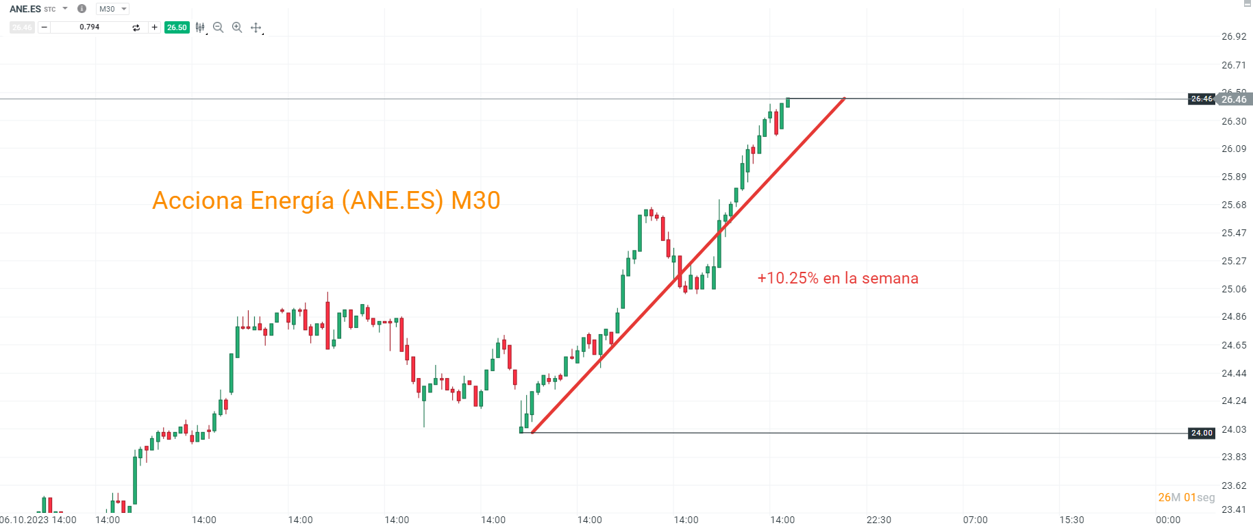 A pesar de un año difícil en el mercado, los analistas han mejorado gradualmente su visión sobre Acciona Energía en las últimas semanas, con cinco casas de análisis mejorando su recomendación en el último mes y medio. En la semana acumula una revalorización superior al 10%. Fuente: xStation