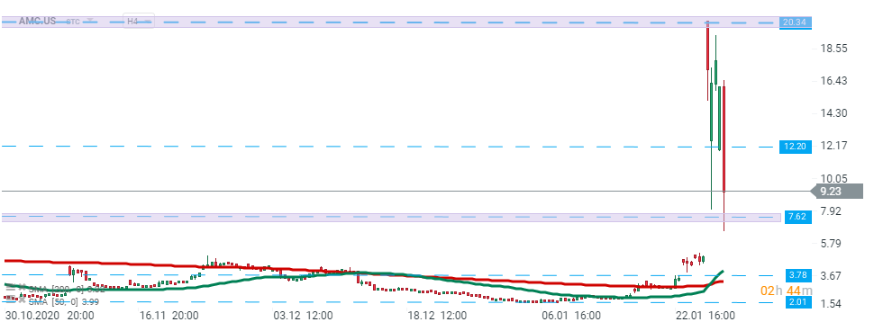AMC Entertainment (AMC.US), H4 intervalo. Fuente: xStation5
