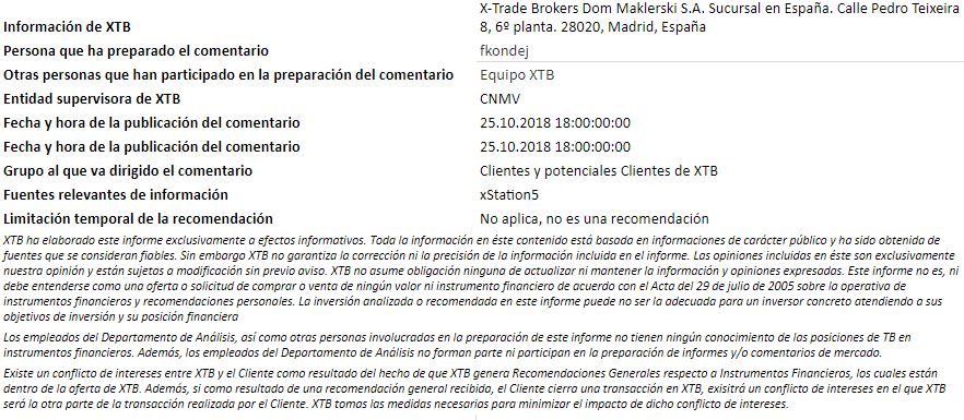 "Este informe se proporciona sólo con fines de información general y con fines educativos. Cualquier opinión, análisis, precio u otro contenido no constituyen asesoramiento de inversión o recomendación en entendimiento de la ley de Belice. El rendimiento en el pasado no indica necesariamente los resultados futuros, y cualquier persona que actúe sobre esta información lo hace bajo su propio riesgo. XTB no aceptará responsabilidad por ninguna pérdida o daño, incluida, sin limitación, cualquier pérdida de beneficio, que pueda surgir directa o indirectamente del uso o la confianza de dicha información. Los contratos por diferencias (""CFDs"") son productos con apalancamiento y acarrean un alto nivel de riesgo. Asegúrese de comprender los riesgos asociados. "