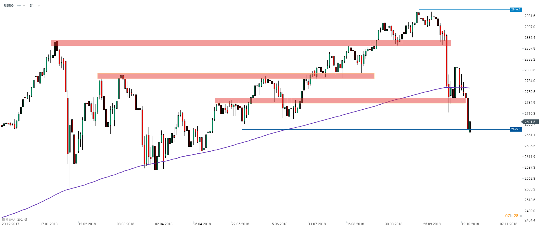 El mercado de acciones de EE. UU. se vio afectado el mes pasado, con un descenso de US $ 500 en torno al 9% durante el período. Sin embargo, la venta masiva se detuvo cerca de los 2675 pts y el índice está apuntando a un rebote más alto. En caso de que la recuperación sea extender la zona de resistencia, el rango de 2735-2745 pts es un nivel para observar. Fuente: xStation5