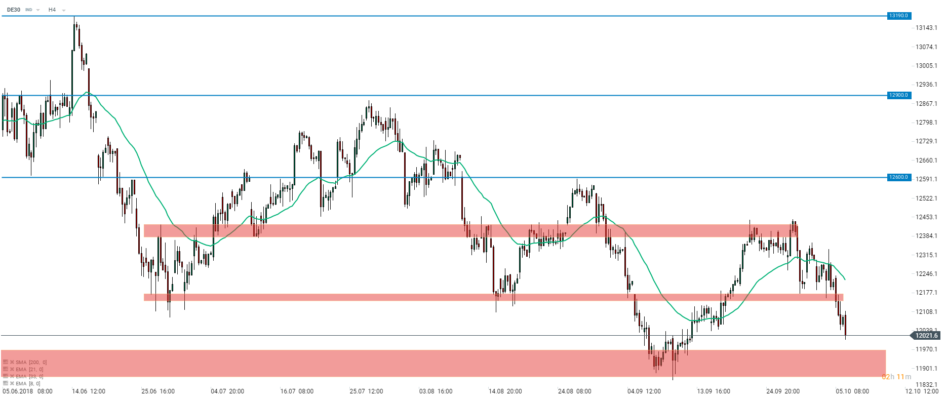 El DAX (DE30 en xStation5) marcha hacia la zona de soporte con un rango de 11870-11970 pts