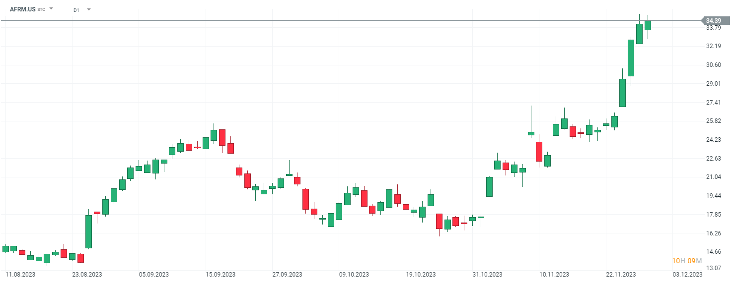 Una de las más conocidas de esta tendencia es GameStop (GME.US), que ya protagonizó su propio movimiento e incluso que tiene una película explicándolo. Nosotros te explicamos aquí que pasó. En los últimos 5 días la acción ha vuelto a subir casi un 20%. El caso de Affirm Holdings (AFRM.US) es similar, pero en este caso la subida ha sido del 34,57% mientras que Coinbase (COIN.US) ha subido casi un 15%.