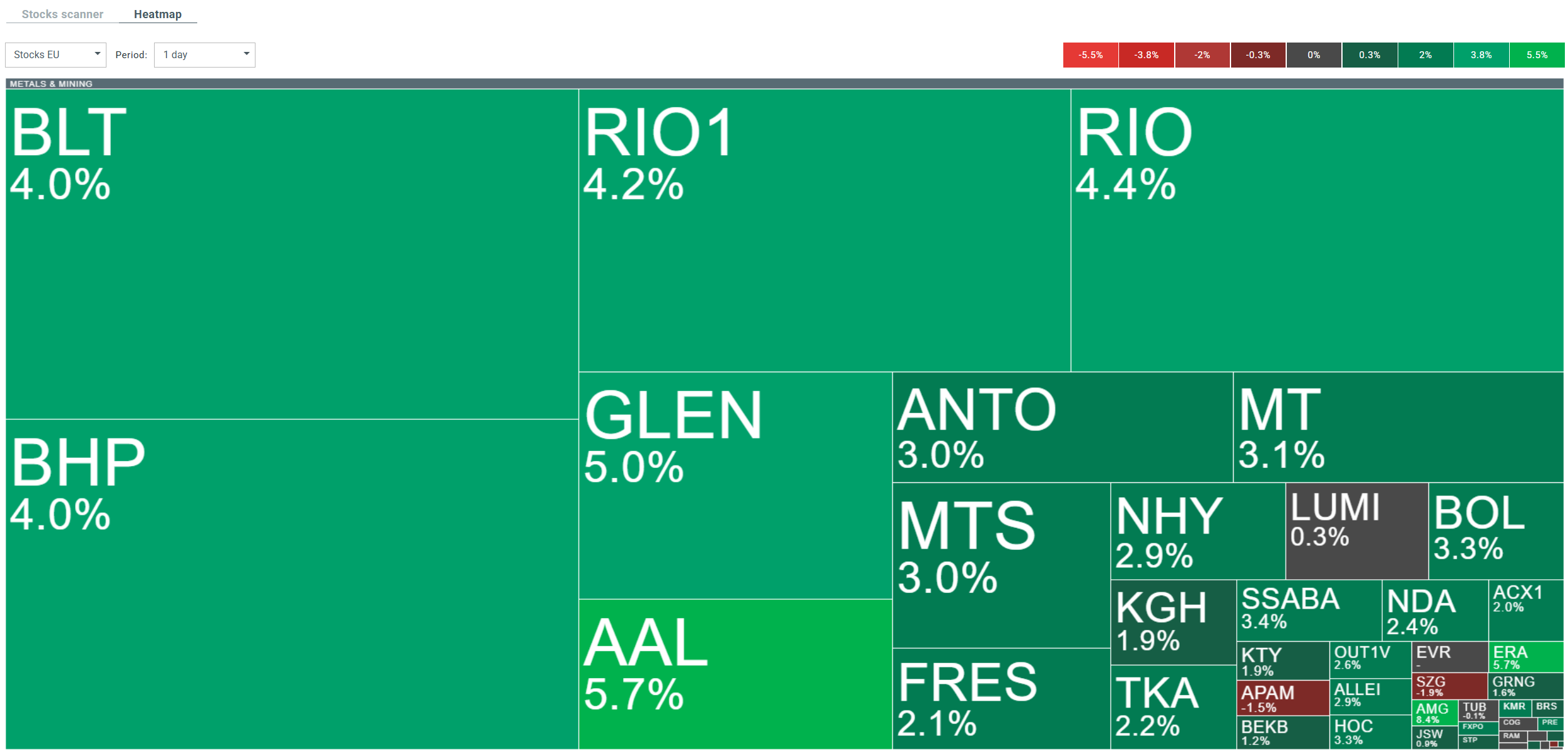 El sector metalúrgico se está recuperando con fuerza tras las noticias procedentes de China, a pesar de haber estado recientemente bajo presión por parte de Estados Unidos, que impuso un arancel del 50% al cobre.