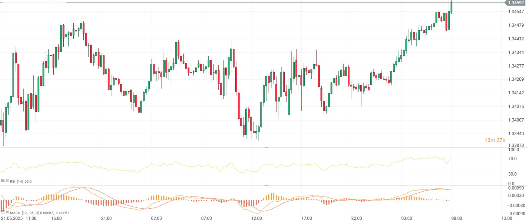 - Ventas minoristas básicas en el Reino Unido (interanuales) (abr.): 5,3 % real frente a 4,4 % previsto frente a 3,3 % anterior.