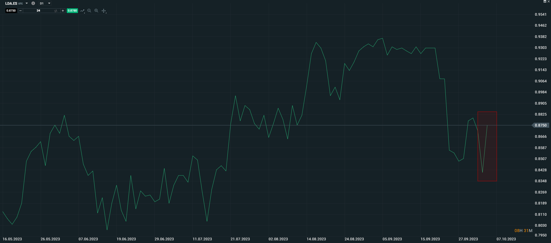 "Este informe se proporciona sólo con fines de información general y con fines educativos. Cualquier opinión, análisis, precio u otro contenido no constituyen asesoramiento de inversión o recomendación en entendimiento de la ley de Belice. El rendimiento en el pasado no indica necesariamente los resultados futuros, y cualquier persona que actúe sobre esta información lo hace bajo su propio riesgo. XTB no aceptará responsabilidad por ninguna pérdida o daño, incluida, sin limitación, cualquier pérdida de beneficio, que pueda surgir directa o indirectamente del uso o la confianza de dicha información. Los contratos por diferencias (""CFDs"") son productos con apalancamiento y acarrean un alto nivel de riesgo. Asegúrese de comprender los riesgos asociados. "