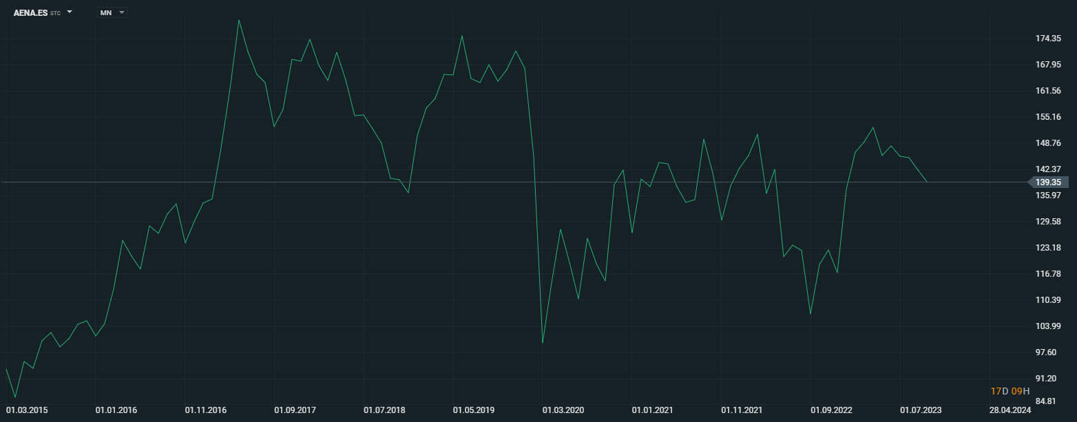 Sin embargo, la compañía sigue sin alcanzar el precio al que cotizaba antes de la pandemia a pesa de que los beneficios también son mayores a los de 2019. Esto hace que la empresa cotice en torno los 15-16 veces beneficios frente a las casi 18 veces que cotizaba en 2019. Recordemos que la compañía cuenta con una posición monopolística en los aeropuertos en los que opera. En España al menos, es complicado que pierda esas concesiones debido a que el estado español tiene el 51% de la compañía.