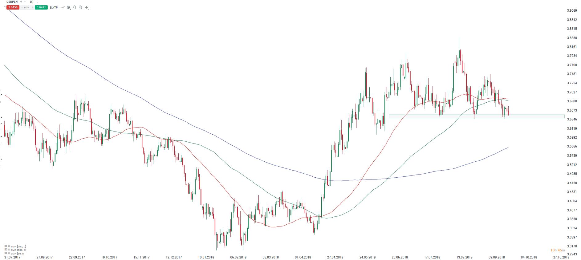 El cruce USDPLN testea los niveles de soporte de los 3,64 . Fuente: xStation5