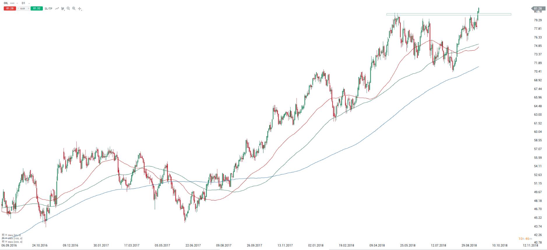 El barril de brent (OIL) rompe el nivel clave de los 80$. Fuente: xStation5