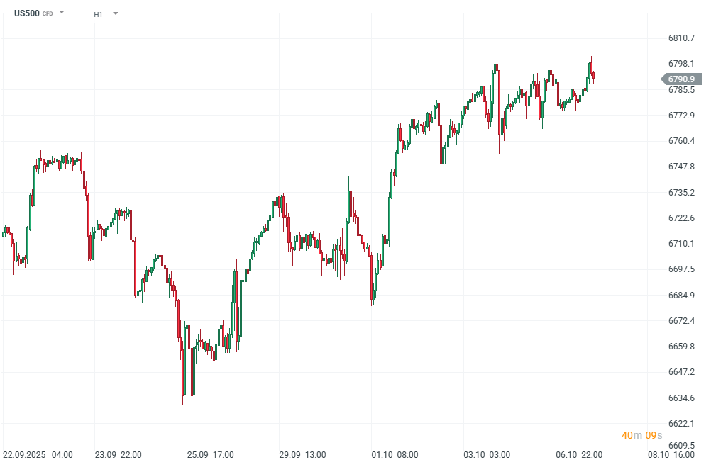 La sesión de ayer cerró con moderadas alzas, con el S&P 500 y el Nasdaq 100 alcanzando nuevos máximos históricos, impulsados por un fuerte repunte en las acciones de AMD tras el anuncio de su acuerdo con OpenAI. El cierre gubernamental ha entrado ya en su séptimo día, retrasando la publicación de algunos informes económicos. Los mercados de predicciones estiman que podría extenderse durante unos 19 días. Entre los oradores de la Reserva Federal para hoy se incluyen Raphael Bostic, Michelle Bowman, Neel Kashkari y Stephen Miran.