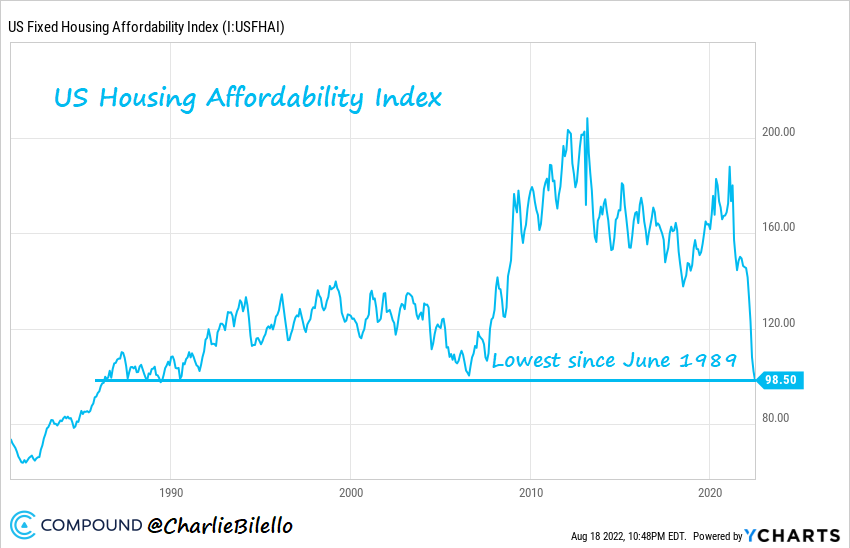 La asequibilidad de la vivienda en EE. UU. alcanzó un nivel no visto desde 1989. Fuente: compoundadvisors.cm