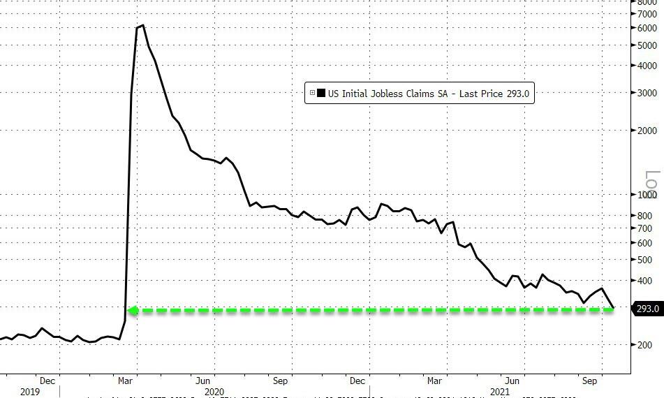 El informe de hoy del Departamento de Trabajo de EE. UU. mostró una caída mucho mayor de lo esperado en las solicitudes iniciales de desempleo la semana pasada, lo que llevó el número de desempleados recientemente a su ritmo anterior al virus. Las solicitudes de desempleo disminuyeron en 36.000 a 293.000, que es la segunda caída consecutiva. Este es el número más bajo de ciudadanos que solicitaron beneficios desde la semana del 14 de marzo de 2020, cuando la pandemia se intensificó y la primera vez que los reclamos cayeron por debajo de 300.000. La recuperación constante del mercado laboral continuó en medio de un repunte de la demanda de trabajadores y una desaceleración de los despidos y separaciones. Aún así, hay indicios de que muchas personas permanecen al margen de la fuerza laboral debido a las preocupaciones persistentes sobre el coronavirus, con el nivel de nuevas reclamaciones que se mantiene por encima del ritmo semanal promedio desde antes del virus en 2019 y la tasa de participación en la fuerza laboral de septiembre se mantiene por debajo de su nivel desde febrero de 2020, según el Departamento de Trabajo de EE. UU.