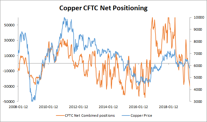 Posicionamiento especulativo relativamente bajo en el cobre, pero todavía hay espacio para más caídas