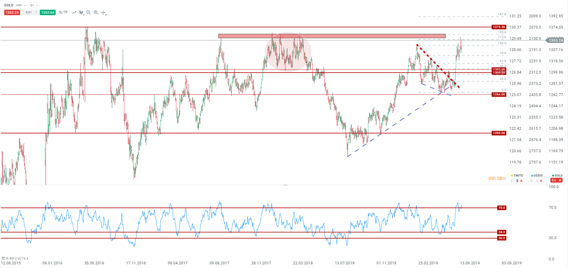 El oro está mirando otra prueba de la zona de resistencia clave. Una ruptura por encima del nivel de $ 1375 podría significar que el oro comenzó un nuevo impulso ascendente a largo plazo. Fuente: xStation5
